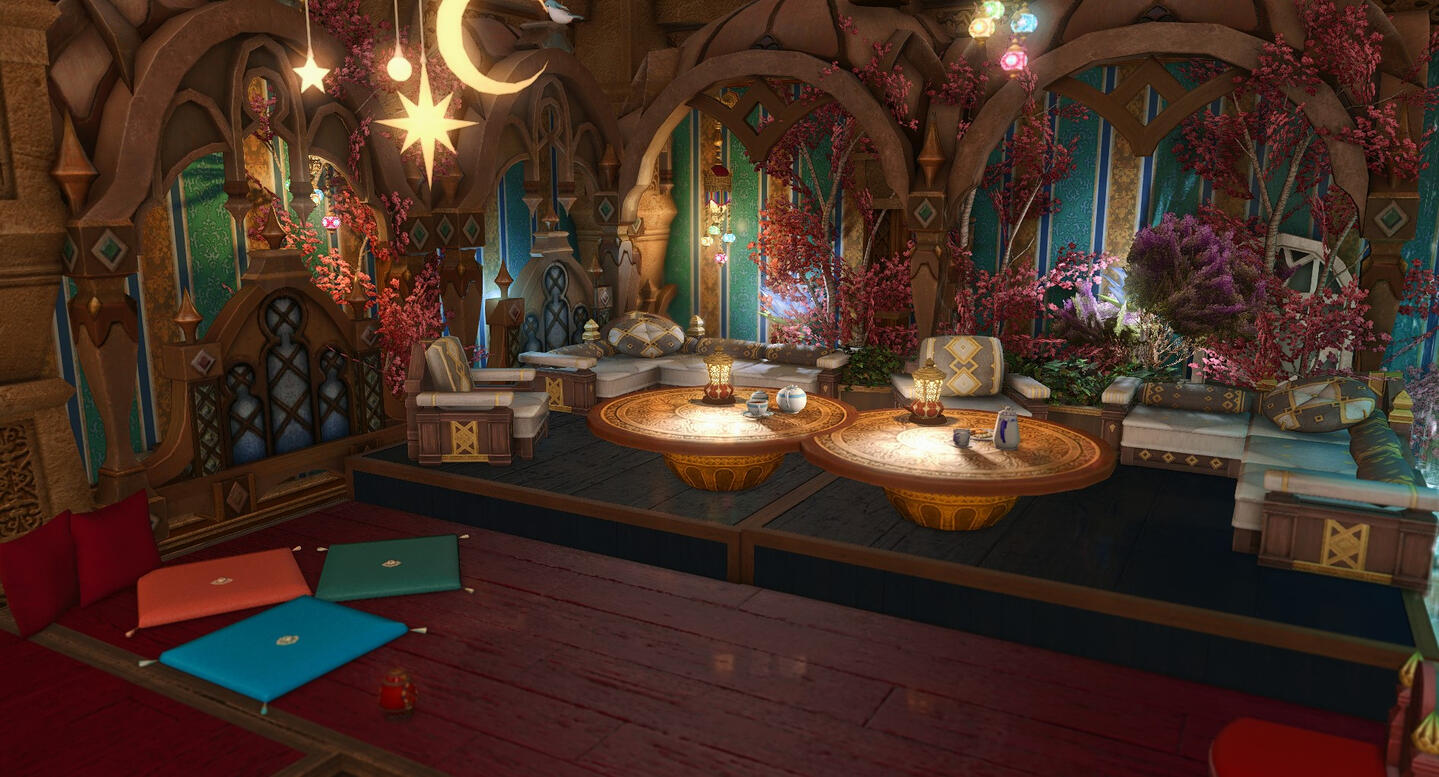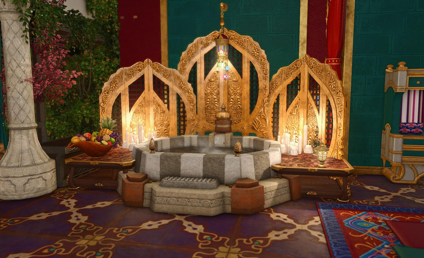 You are invited to come to sit in the hookah and tea lounge where our guests can indulge some tea or hookahs to extend your relaxation.Downstairs, you will find the Hammam. You are welcome to enter the warm water where the steam from our infusers fill the room with a mix of various herbal essences. As clothes are optional in the basement you can change yourself in the rooms near the stairs.The room upstairs host two semi-private bath areas where you can spend quality time with a person of your choosing.We do not offer an escort service, but staff are free to chat and ropleplay on their own terms. Saffron is purely an RP venue and such gil is not needed. That said, we will accept tips or donations. If you wish to donate you can approach any staff member from the "ZA" FC, they will accept your donation. Any donations over 300k will receive a gift.This is an LGBTQ-owned venue and sex-positive environment and so is a 21+ establishement.